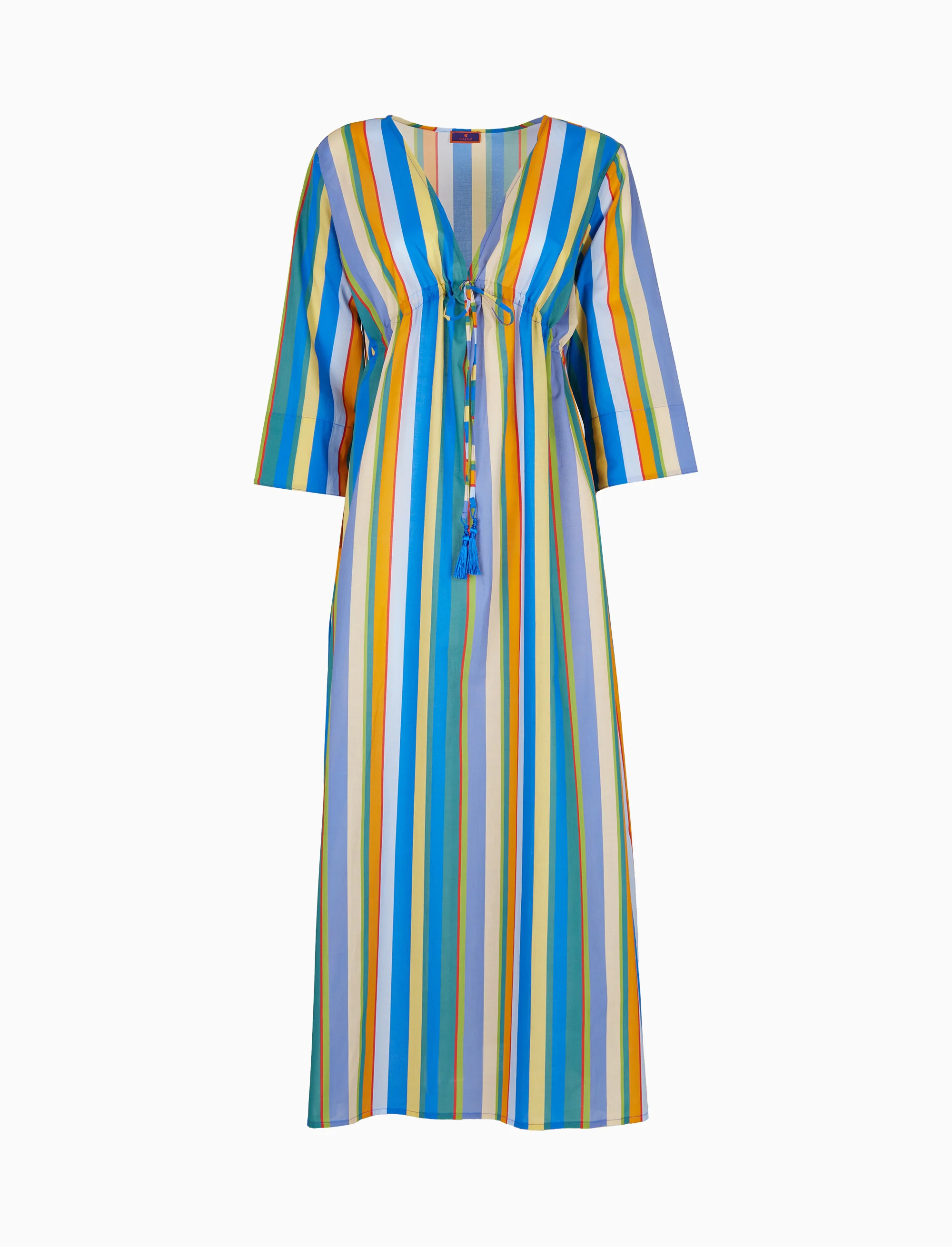 Kaftano lungo donna cotone righe multicolor verticali azzurro
